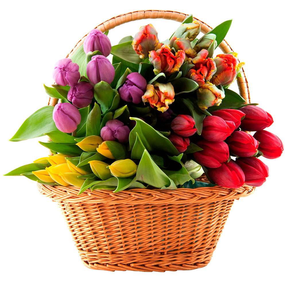 Цветы в корзинке «Микс тюльпанов» с доставкой по г Барнаул: вы можете купить букет в онлайн-магазине «Флормания» по цене от 3790 руб.